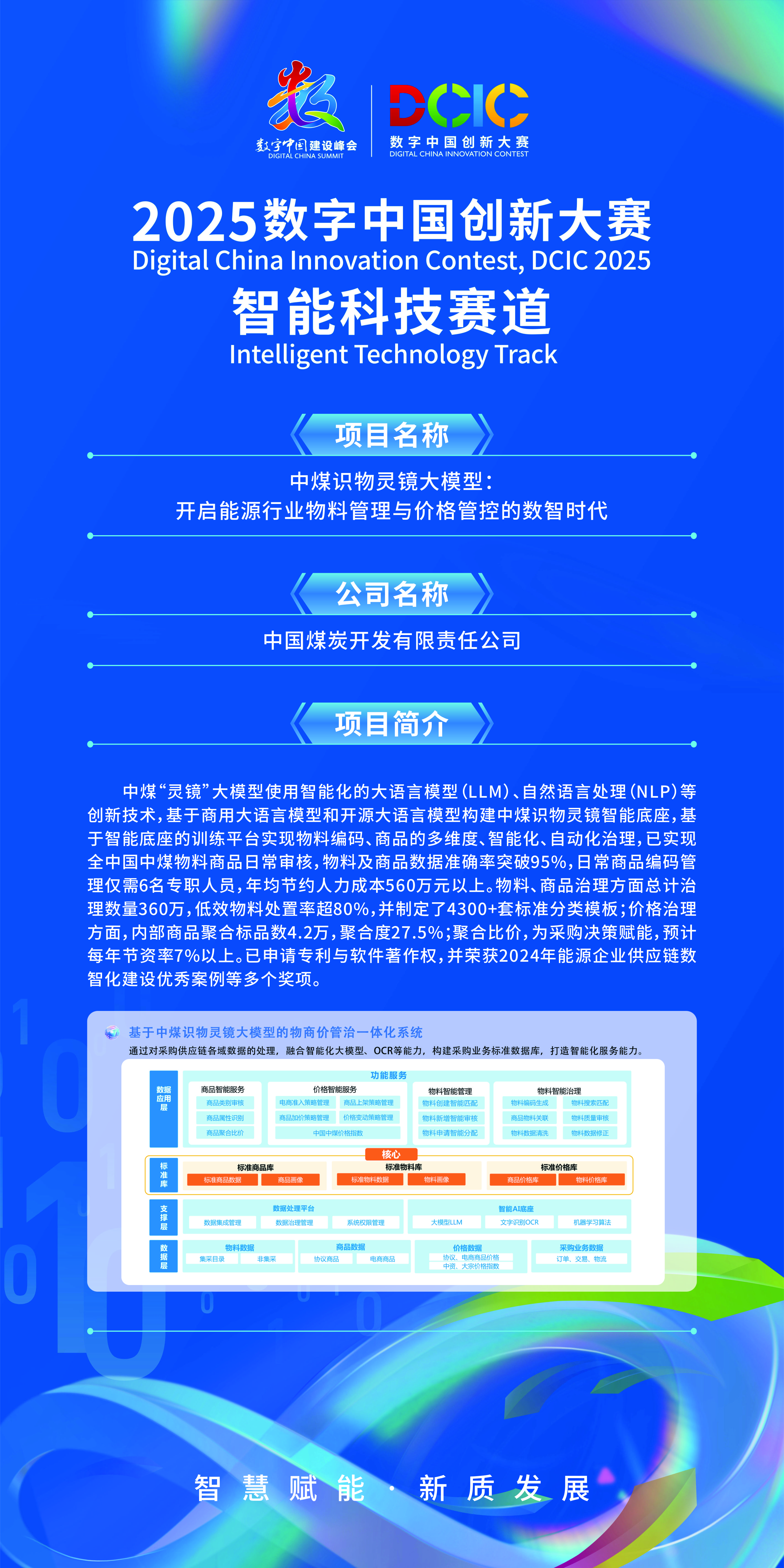 “中煤靈鏡供應鏈大模型”項目闖入2025年數字中國創新大賽智能科技賽道總決賽